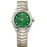 The new Ebel Wave features a deep and intense mother-of-pearl Kelly Green dial. This delicate model brings luxury and fresh color together to welcome the (...)