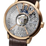 Set out like an amphitheatre that converges towards the central arena where the tourbillon rotates, the architecture of the IO tells the time in apertures (...)