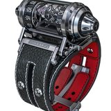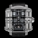 Manufactured from a single block of titanium, its sleek, angular chassis reveals its exceptional “V8” (8 cylinders) engine through its sapphire crystal. The (...)