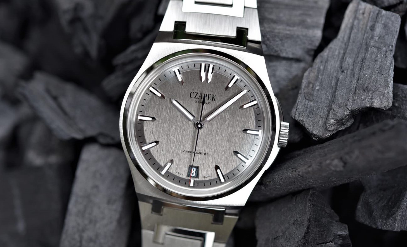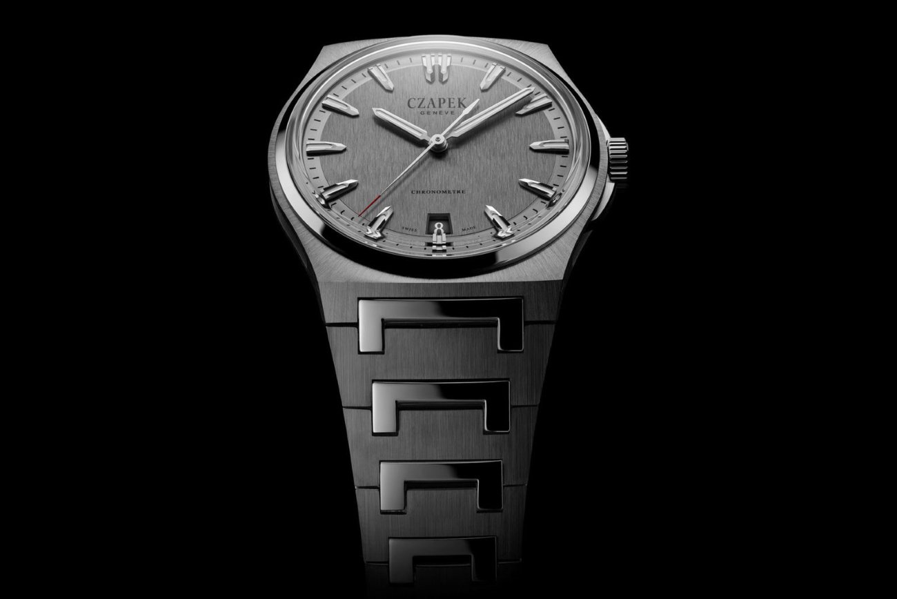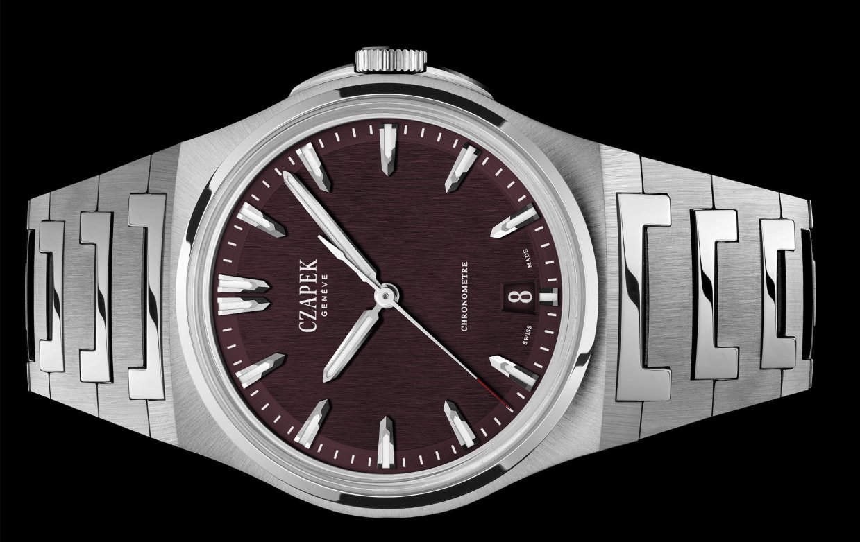 The hands design is reminiscent of a sword, sporty and easy-to-read, as well as the indexes. The 40.5mm stainless steel case is integrated with an original double ‘trompe l’oeil’ curve, another unconventional design choice making this timepiece unique and exclusive. It is rounded off by an ergonomic brushed integrated bracelet, whose links mesh to form a highly polished “C” for Czapek.