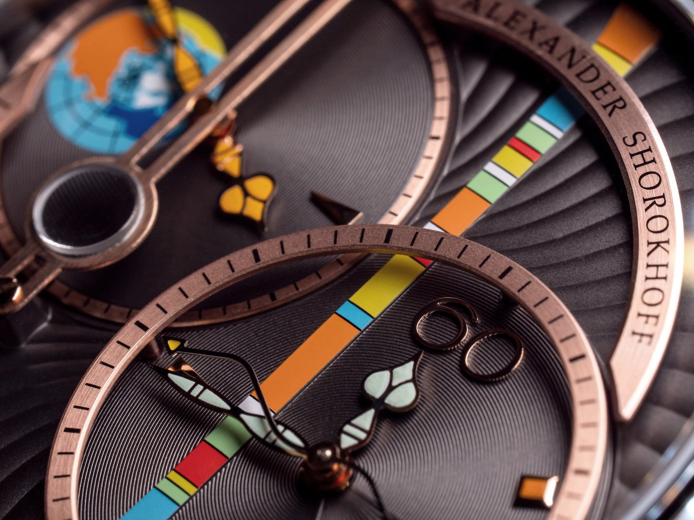 As with the previous model, the different levels are supplemented by a calendar window, which is positioned on the highest level. With the creatively integrated magnifying glass, the relatively small date of the refined ETA movement 2671 can be enlarged. The magnifying glass resembles a monocle and underlines the creative hand of Alexander Shorokhoff, who did not, as it is usually the case, integrate the magnifying glass directly into the sapphire crystal.