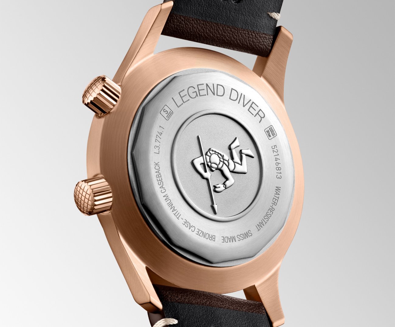 Like the collection’s previous models, this new version retains the spirit and clean lines of the original timepiece, while being equipped with up-todate technical features. The newest Longines Legend Diver Watch houses an automatic movement with silicon balance-spring inside its 42 mm bronze and titanium case. And just as on the original model, the screwdown case back is decorated with an embossed emblem of a diver.