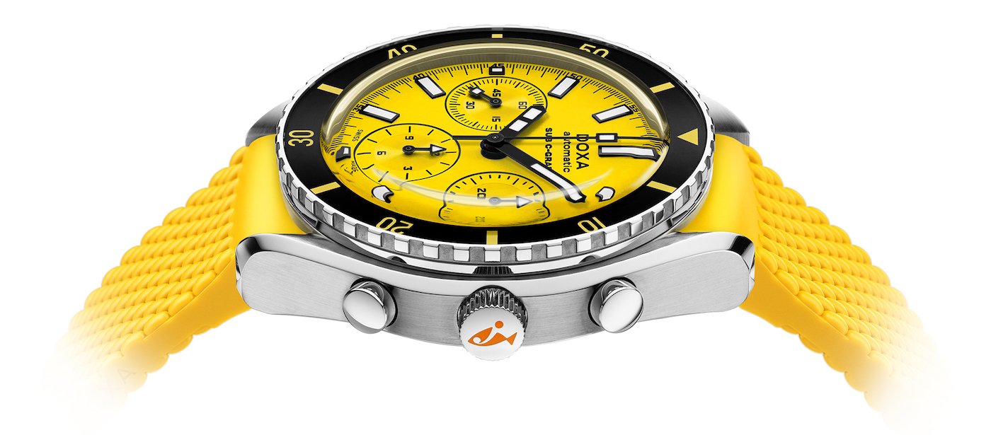 olour is in Doxa’s DNA. Over 50 years ago in 1967, the brand was the first one to introduce orange in a world of white, gray or black watch dials. It wasn’t just about daring to be different. It was a purpose-driven choice.