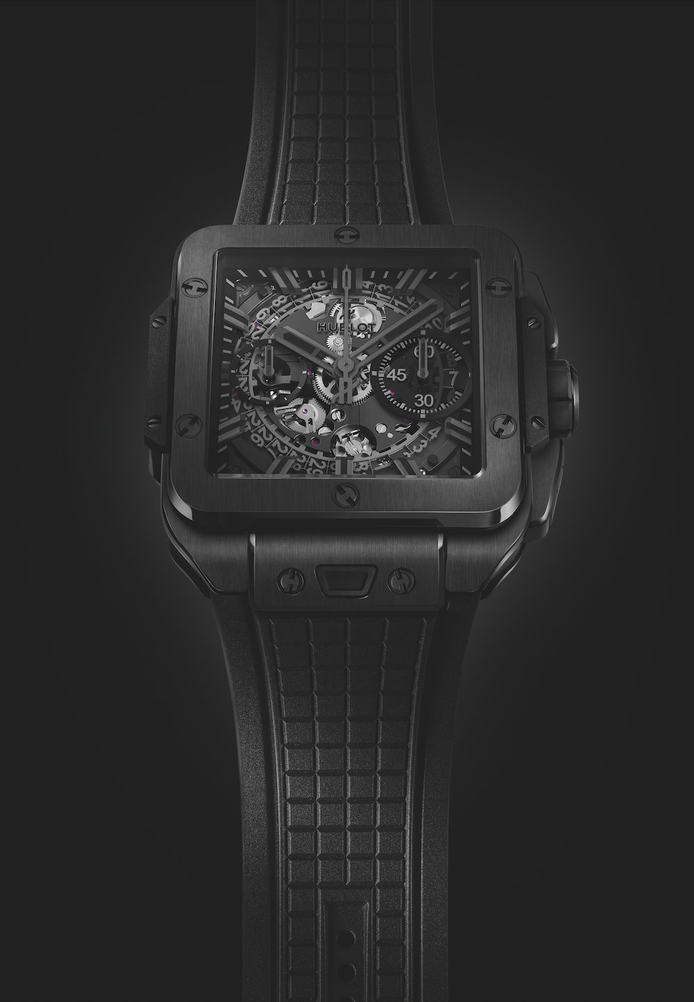 The second challenge was the modular construction of the case, designed in line with Hublot’s DNA, with a central housing dressed with an upper and lower plate to enable a myriad of combinations and transformations. But this time, it is square in shape, and therefore much more difficult to make water resistant – Hublot pulls off the challenge with a guaranteed water resistance to 100 metres.