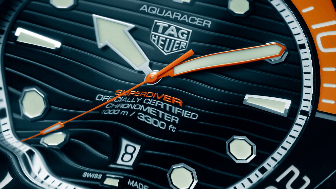 - It is no coincidence that the colour orange dominates the TAG Heuer Aquaracer Superdiver 1000. It is the very colour of maritime safety, sitting opposite the blue of the ocean on the colour wheel, meaning it can be quickly spotted at sea. In addition to the ultra-visibility of this high-performing timepiece, the TAG Heuer teams have also worked on improving the ergonomics, notably by incorporating deeper recesses in the bezel to allow for better grip and to facilitate turning.