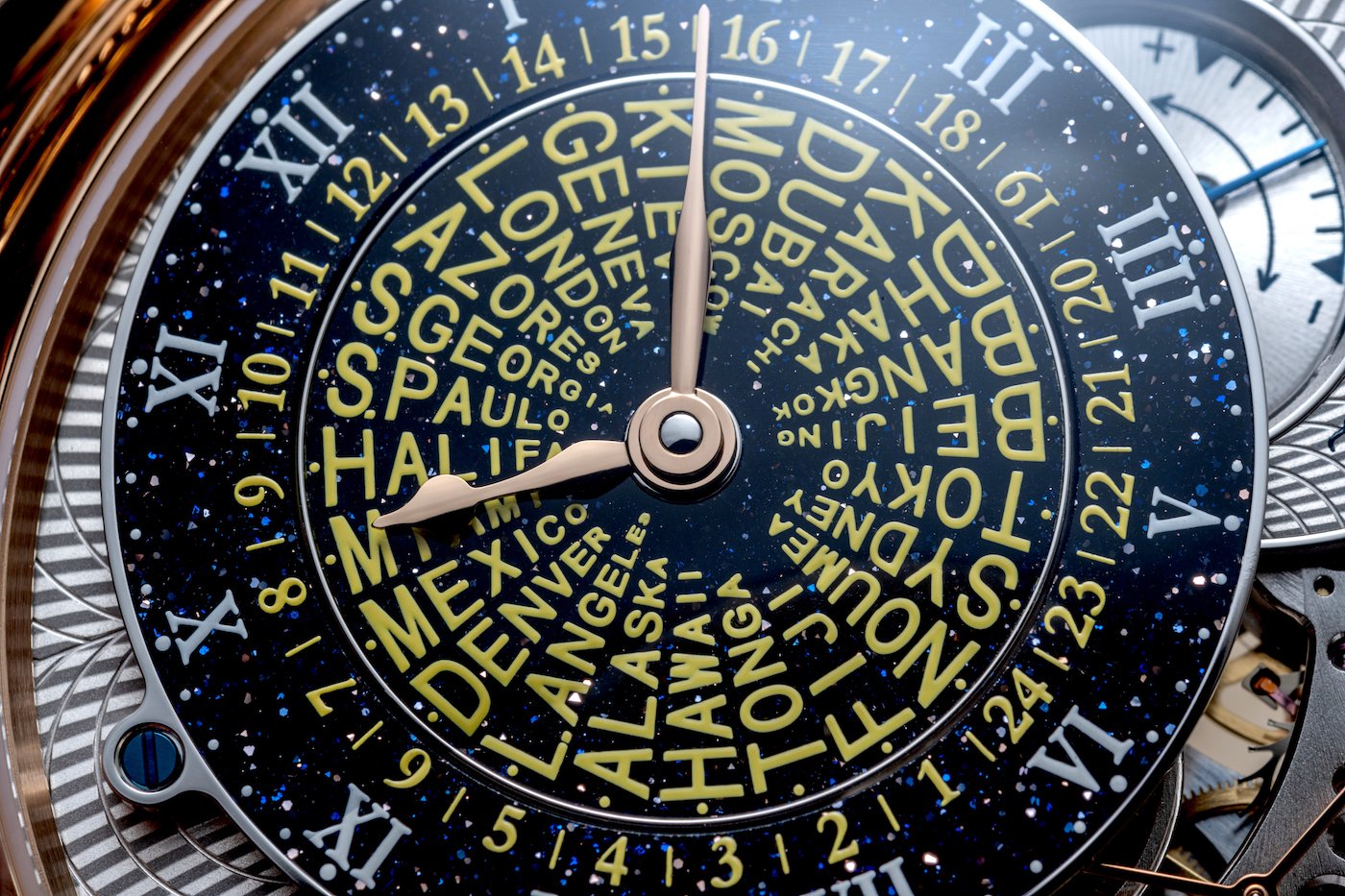 magine you are on a business trip from Miami to Geneva, then on to Dubai, and finally finishing in Singapore. Just figuring out exactly what time it is after crossing several time zones is challenging enough, and, if you are wearing a standard world time watch, chances are the world time information on the dial is too small for your weary eyes to actually read.