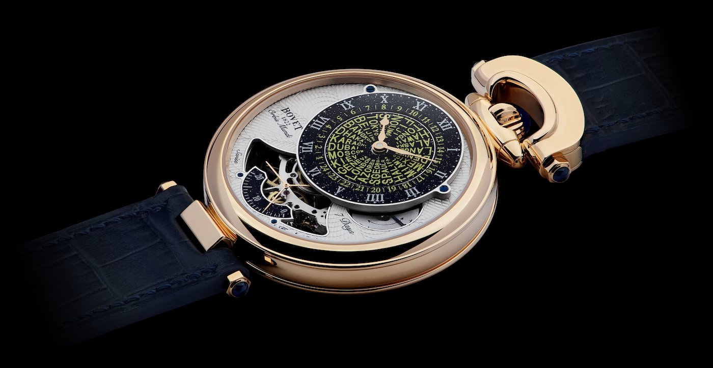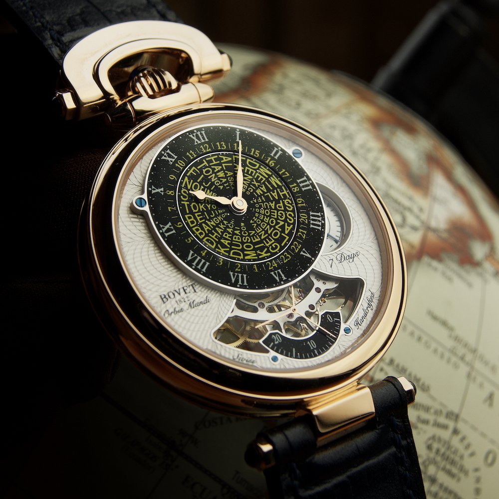 “As you can imagine, I travel quite a lot as head of Bovet 1822, and deal with people in many different time zones,” owner Pascal Raffy says. “I wanted an elegant timepiece that would make it easy to set and tell the time anywhere in the world. My team of amazing developers and watchmakers and I came up with a surprisingly simple yet beautiful way to display all 24 time zones.”