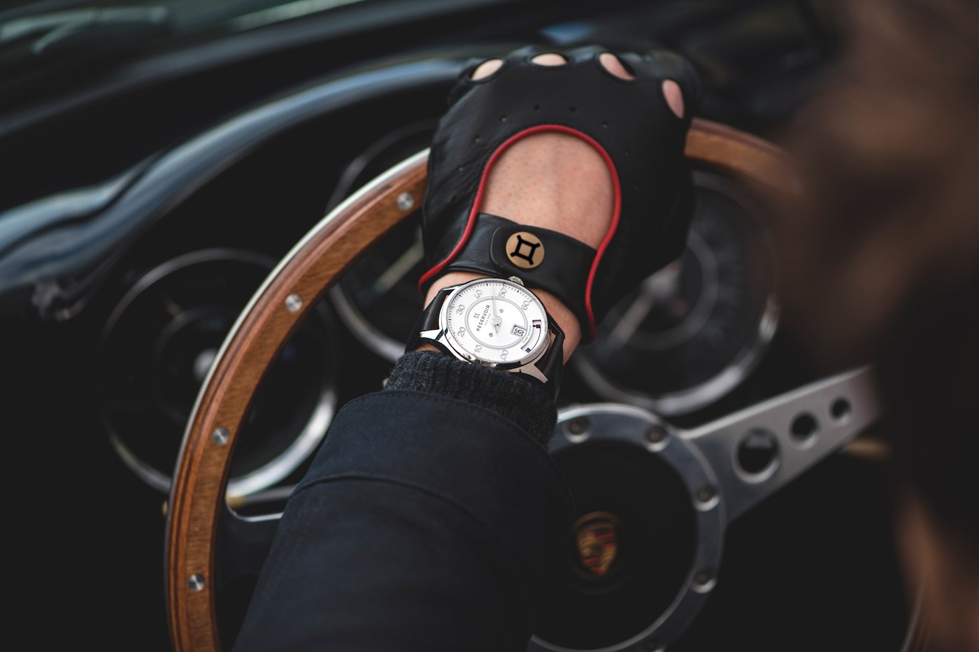 he Kanister collection is inspired by the RPM counter of the legendary Porsche 356 Speedster. The new 41.5 mm Reservoir Kanister Silver enriches the collection with a silver-finish dial, complete with indexes and a minute hand with polished facets. Worn on a timelessly elegant black or taupe leather strap, the Kanister collection pays tribute to the spirit of freedom and speed that characterised the 1950s.