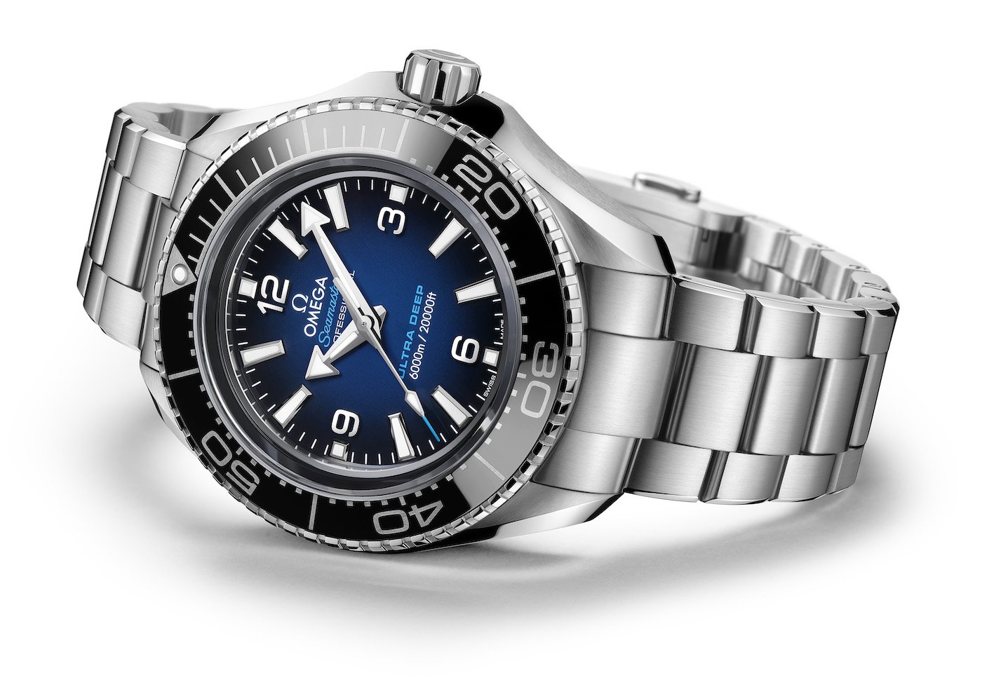 In April of that year, three Ultra Deep watches joined explorer Victor Vescovo on a mission to the bottom of the Mariana Trench in the Pacific Ocean: at 10,935 m (35,876 ft), this is the deepest any human or watch has ever dived. Two of the watches were attached to the submersible’s robotic arm, while another was strapped to a data-gathering unit known as a Lander. All three watches completed the 12-hour dive without a problem and surfaced completely unscathed.