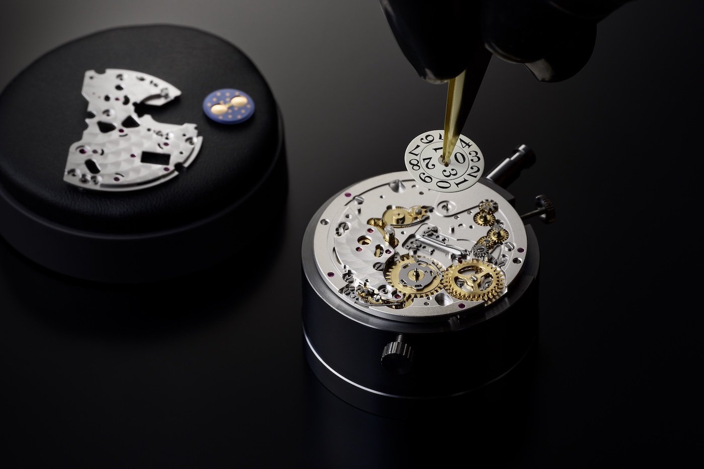 With the annual calendar the date advances automatically at the end of the month from the 30th or 31st to the 1st. What seems like magic is in fact a precisely calculated and meticulous mechanical operation. The month wheel at the heart of the movement serves as this function’s “memory”. Glashütte Original’s watchmakers have equipped it with a ball bearing. A total of 38 tiny balls made of hardened steel with a diameter of 0.5 mm ensure that friction is reduced to a minimum and the efficiency of mechanical processes improved. The cam disc at the top of the wheel completes one revolution per year, and its irregular rim triggers the switching process at the end of the month; its indentations mark the months with 31 days. A small tooth on the underside of the wheel advances the month ring via a gear chain, bringing the retrograde display on the dial side to life.