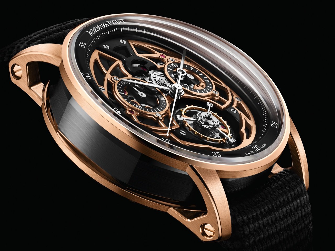 Although ceramic already featured on Code 11.59 by Audemars Piguet chronographs in 2021, this is the first time it has been used on watches with complications. Part of the appeal of black ceramic lies in its high-tech appearance; each model requires specific manufacturing and hand-finishing processes. While the exact composition of the ceramic remains a well-kept secret, it is made of zirconium oxide powder (ZrO2) which is combined with a special binding agent. The colour reveals itself only once the material has been sintered at around 1,400° C.