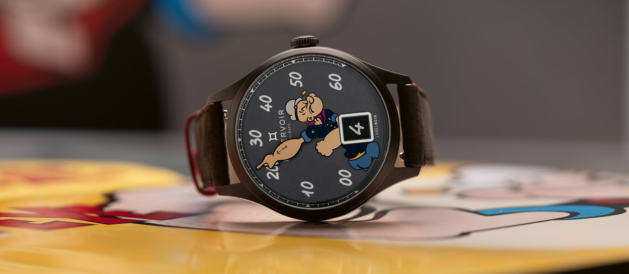 Label Noir is adding yet another twist: a witticism. As if to remind us that watchmaking is an art that can be as serious as it is playful. As if to remind us that personalisation in particular is a privileged, creative, joyful and enjoyable experience. It’s an opportunity for manufacturers to see their own creations with a new eye. An opportunity for customers to build a collection outside the catalogues, with limited editions that are like no other. Popeye, for one, is sure to agree, as emphasised by Label Noir’s recent collaboration with Reservoir…
