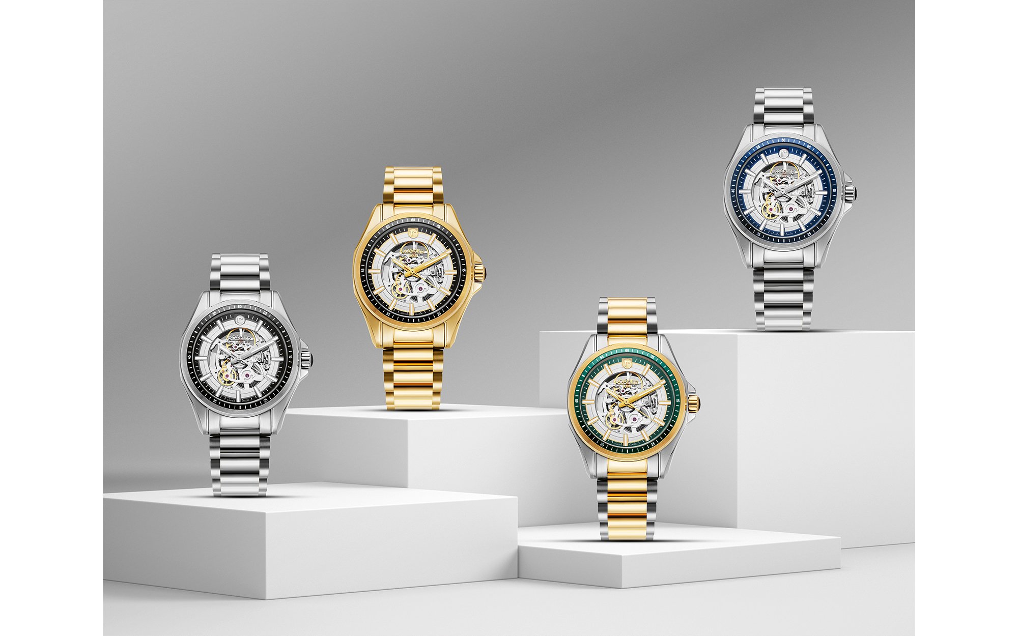 - With the Rockshell Mark III Skeleton, Roamer presents a timepiece that is both sporty and elegant, launched with four models. In addition to cool stainless steel with a blue or black framed skeleton window, a gold-plated version with black and a gorgeous two-tone dress watch version with green provide plenty of options for personal choice.