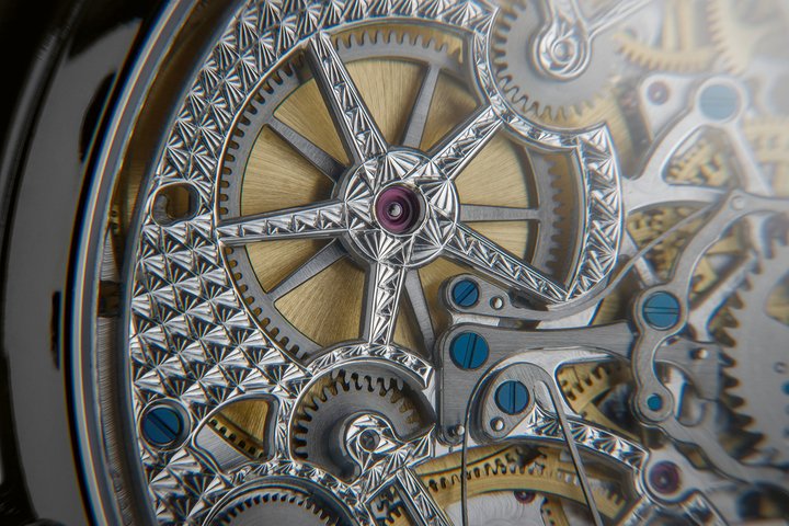 The Solution: The Récital 28 Prowess 1 from Bovet, thanks to an ingenious roller system, can be adjusted to any one of the 24 times zones: UTC – Coordinated Universal Time; AST - American Summer Time; EAS - Europe and America Summer Time; EWT - European Winter Time. There is no other timepiece in the world that does all of this mechanically. Moreover, every component is hand-finished and the bridges of the movement are all hand-decorated and hand-engraved.