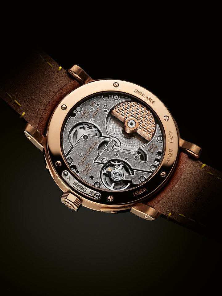 The Calibre LFT023 is the first proprietary automatic three-hand movement designed by La Fabrique du Temps Louis Vuitton in conjunction with movement specialists Le Cercle des Horlogers. Its contemporary aesthetic emphasises the modernity of the Maison’s watchmaking vision, whilst still incorporating references to in-house patrimony with the mainspring barrel and 22k rose-gold micro-rotor, which are decorated with the motifs of Louis Vuitton.