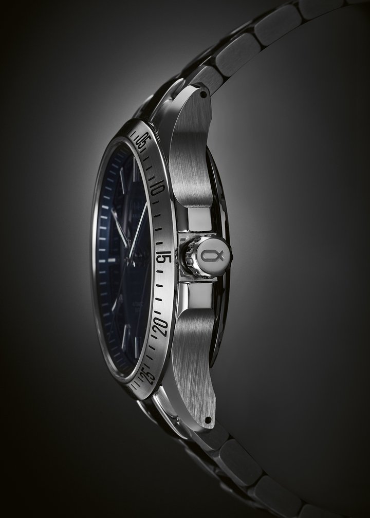 Luminous paint is applied to the hour markers of the dial as well as the hour and minute hands for enhanced visibility in the dark. The watch’s 20 ATM water-resistance makes it wearable in more situations, including when working near water, swimming, surfing and other activities around water. The crown features a screw-lock mechanism to prevent water ingress, while a crown guard enhances robustness.