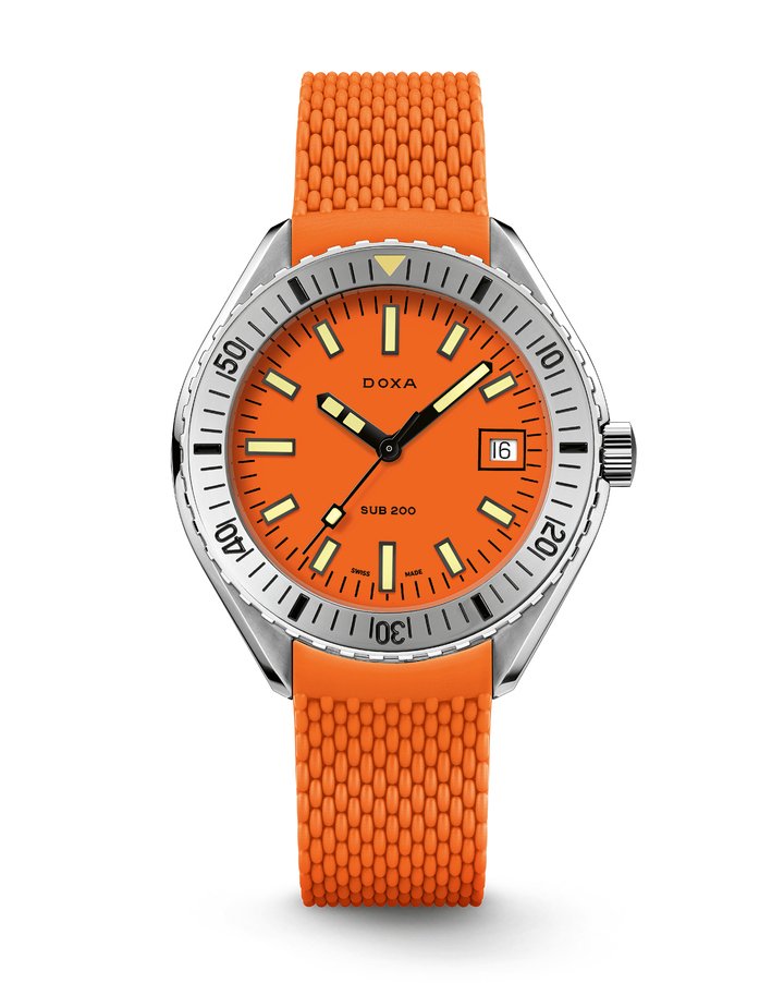 Launching in all eight Doxa colourways, on a rubber strap, the iconic stainless steel “beads of rice” bracelet, or a NATO strap for the Sea Emerald model, the new SUB 200 continues the tradition of combining timeless design, functionality, reliability and elegance at a very accessible price point. Today, with 16 new references joining the permanent SUB collection, the new SUB 200 takes its place in a prestigious lineage with over 50 years of innovation.