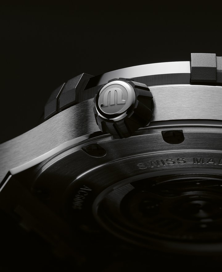 Supplied on a sporty rubber strap featuring a rubber textile-look insert, the Aikonic is equipped with the brand’s patented ML Easy Change. This feature allows the wearer to remove the bracelet, creating an alternative look, without the need for tools and with no visible catches or levers.