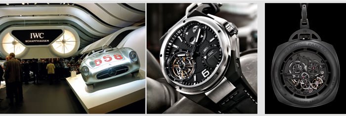 On visitng the IWC stand, one could be forgiven for thinking that you had somehow wandered into the Geneva Motor Show. However, despite the cars and the unbelievably complex engines that were on display, the theme was all about timing, Formula 1 and the introduction of the spectacular Ingenieur Constant-Force Tourbillon. This amazing timepiece has a case combining platinum and ceramic that houses a tourbillon with an integrated constant-force mechanism and a 96-hour power reserve, a perpetual moon phase display, double moon phases for the northern and southern hemispheres and a countdown display showing phases until the next full moon.