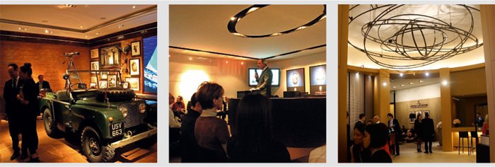 The Ralph Lauren stand was decorated in the typical styling of the brand with an added safari theme. Numerous photographs graced the wood-lined walls with an original 1950s green Land Rover taking centre stage. Three new timepieces caught my attention, a new 45 mm Chronograph Model, Safari RL67, with a gunmetal finish, a ladies’ watch reminiscent of the Art Deco period and a tourbillon.