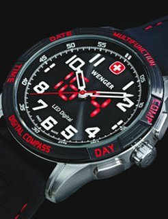 Stainless steel watch equipped with a quartz movement. Hours, minutes, seconds, chronograph, date, black dial with luminescent hands, scratch-resistant mineral crystal, water-resistant to 100 metres.