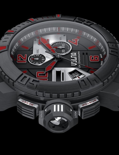 Steel with PVD treatment (46.50) timepiece fitted with a Volna VM-97-02 automatic movement with 42-hour power reserve and a selection of chronometers. Hours, minutes, seconds, date, calculation of immersion time, sapphire crystal, reinforced rubber strap and water resistant to 300 metres.