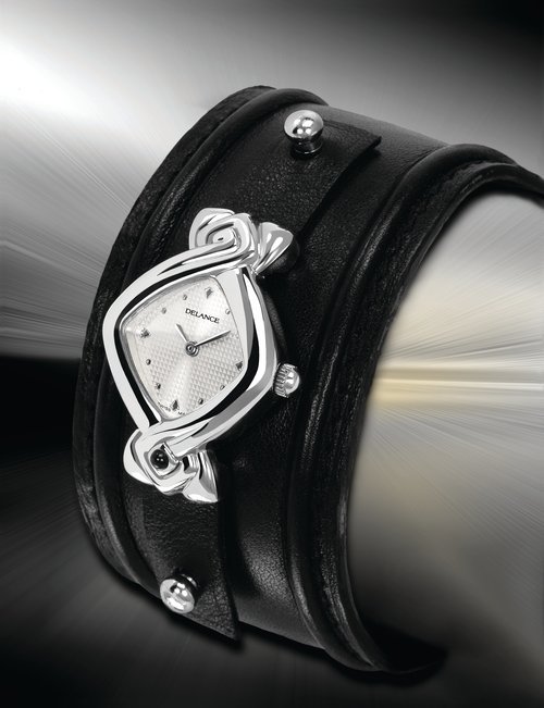 Automatic timepiece with stainless steel or pink gold case of 33mm. The cupid is a double pink and white gold bas-relief put on the dial, laying on an engraved and red enameled field of hearts. He tends his arrow towards the original out-centered counter. The alligator strap is combined with dial in red color and the butterfly fold over clasp and bezel are finished with 1,32 carats of rubies.