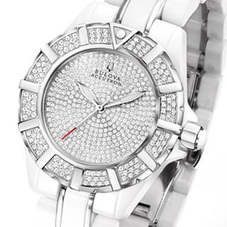 Movement Ronda 775 quartz. Functions Hours, minutes, seconds. Case White ceramic and stainless steel, 36 mm. Unidirectional bezel set with 128 diamonds (0.464 ct). Convex sapphire crystal with silvered surround. Personalised screw-down back. Water-resistant to 50 m. Dial Paved with 424 diamonds (1.536 ct). Luminescent hands. Bracelet/Strap White ceramic and stainless steel with folding clasp.