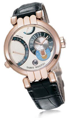 The Premier Excenter Timezone, based on a mechanical movement with a five-day power reserve, enables a second time-zone to be read from a 24-hour retrograde counter.