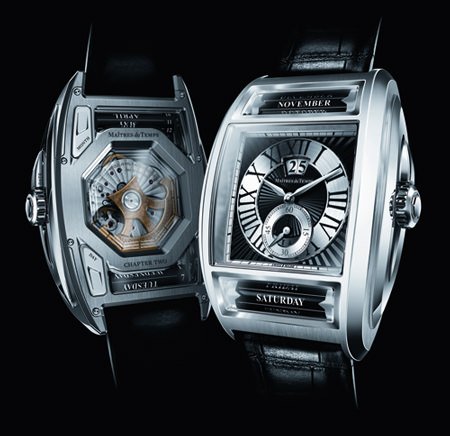 Chapter Two is the second entirely original and innovative timepiece from Maîtres du Temps. It stems from a unique cooperation between Daniel Roth and Peter Speake-Marin, who have pushed the limits of Haute Horlogerie with the world’s most legible instantaneous triple calendar timepiece. This model combines a large date with the day of the week and the month of the year written out in full on their respective rollers at 6 and 12 o’clock.