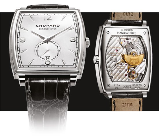 Chronometer-certified by the COSC, the movement follows the contours of the case housing it – a rare distinctive feature matching the demands of Haute Horlogerie. The L.U.C 3.97 proprietary movement can be admired through the sapphire crystal case. The slender, slightly curving case makes a perfect fit on the wrist and is available in 18-carat rose or white gold with satin-brushed and polished finishing.