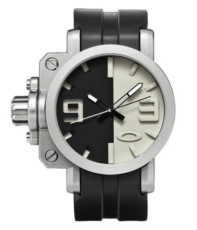 Oakley’s Gearbox has been introduced in new colour combinations, including this striking black and white split dial, with a unique split seconds hand. This quartz timepiece also comes in a red and black dial treatment, as well as monochromatic white and black. The Gearbox is water-resistant to 100 metres and features a screw-down crown and case back.