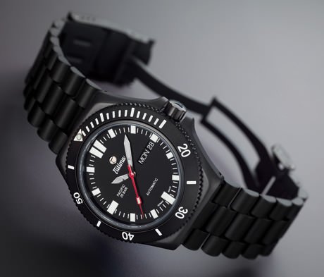 The new Pacific Black from Tutima is a diver’s timepiece water-resistant to 200 metres. The Pacific Black features a 43 mm case, powered by an ETA 2836-2 self-winding movement with day/date. The case and bracelet are made in specially hardened stainless steel that is then PVD coated. The timepiece has an unidirectional rotating bezel with a 60-minute diving scale.