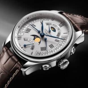Movement: Automatic, L707.2 calibre, 16½ lignes, 25 jewels, 28,800 vib/h, 46-hour power reserve. Functions: Hours, minutes, moon-phase indicator, day/night indicator and four retrograde functions: seconds, day, date, second 24-hour time zone. Case: Stainless steel, 41 mm or 44 mm. Sapphire crystal, front and back. Water-resistant to 30 m. Dial: Silvered or black, barleycorn guilloché decor. 11 black or white Roman numerals. Bracelet/Strap: Brown or black alligator leather or stainless steel with folding clasp.