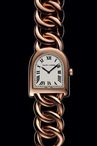 The uniquely-shaped Stirrup collection by Ralph Lauren recalls the brand’s equestrian heritage. One of the latest incarnations in the collection features a sumptuous gold chain bracelet for which each link has been individually crafted to ensure a perfect fit on the wrist.