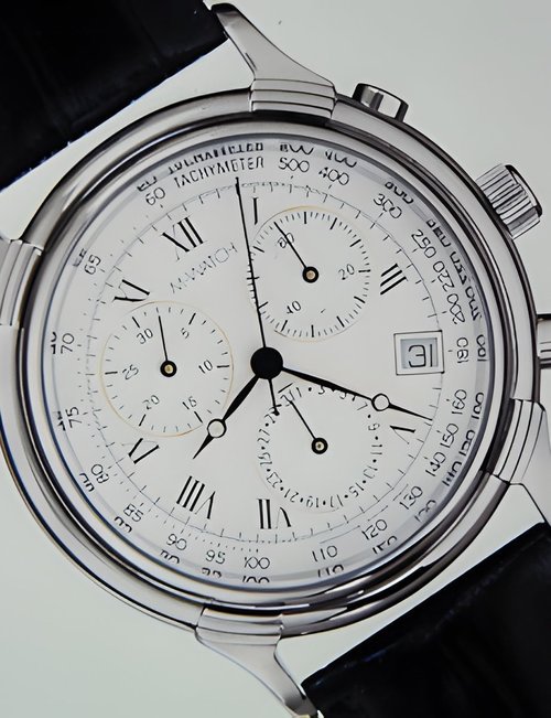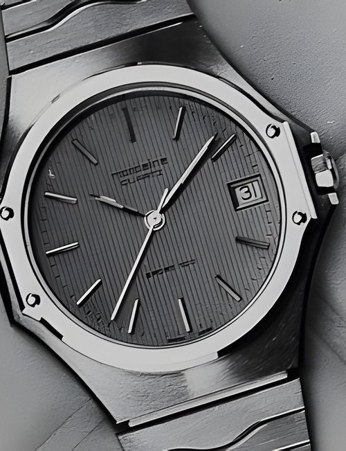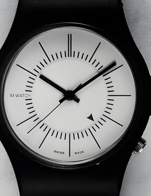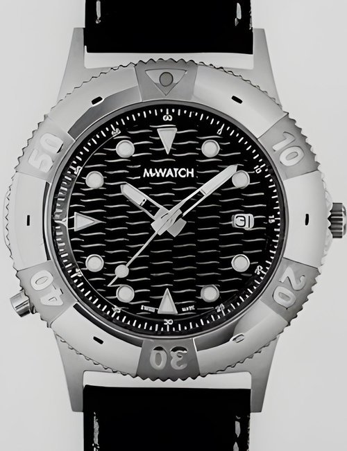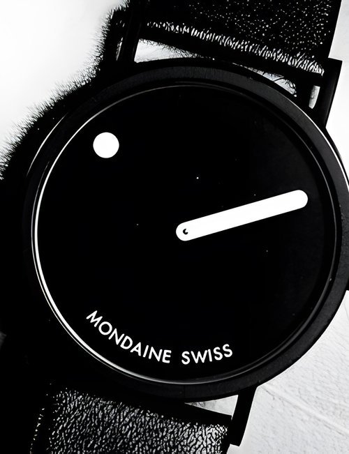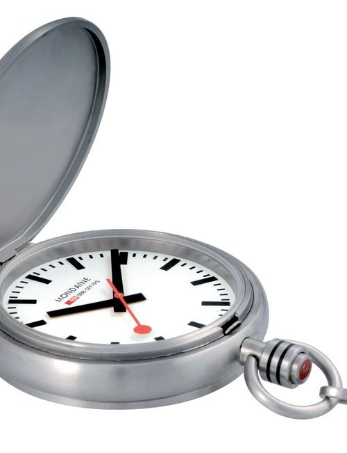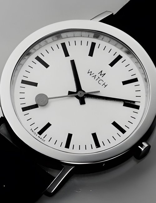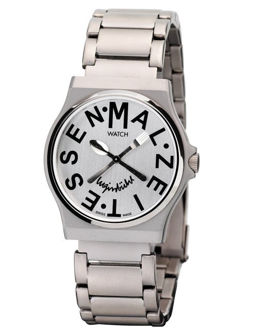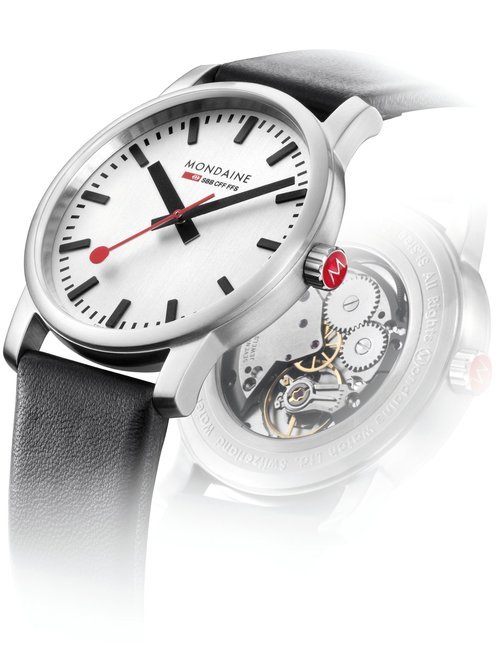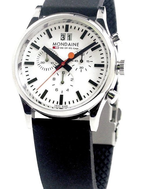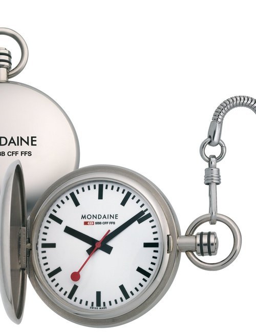 An already classic design is taken to the next level with this new vintage version of the watch derived from the legendary station clock of the Swiss railways. Round 41mm brushed stainless-steel case, ETA 2801-2 self-winding calibre, silver-toned, vertically brushed white dial with raised hour markers, black leather strap with stainless-steel buckle.