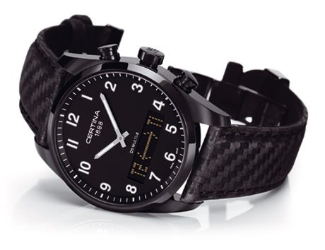 The classic design of this watch belies the numerous functions available to its wearer from the multifunction quartz movement. Brushed and polished round 42mm stainless-steel case, ETA E49.351 quartz calibre with interchangeable analogue hours and minutes, two digital second time zones, sound and vibration alarm, timer, day, date, week, month, year, chronograph with memory and backlight, brown leather strap with steel safety clasp.