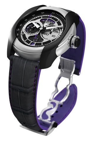 This new chronograph model from Blacksand Genève features the brand’s first movement designed and produced in house. Fitted into the familiar Uniformity case with its contrasting sections, the Blacksand calibre 2002 is a finely decorated mono-pusher chronograph with a power reserve of 50 hours. Two different dial variants of the Stratographe are available: one with a tachymeter dial and one with a pulsometer dial.