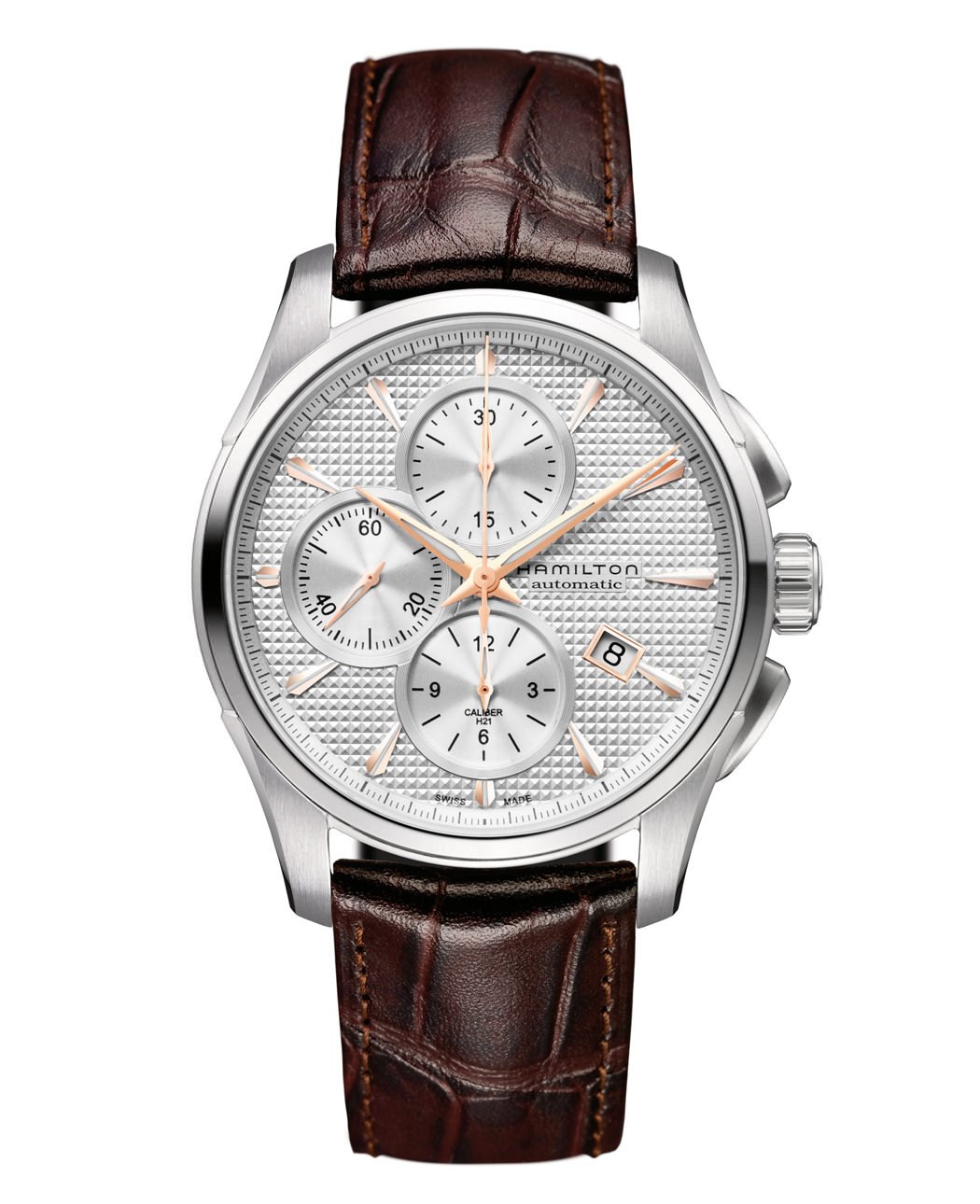 Movement: Hamilton H-21 calibre self-winding chronograph movement with 60-hour power reserve