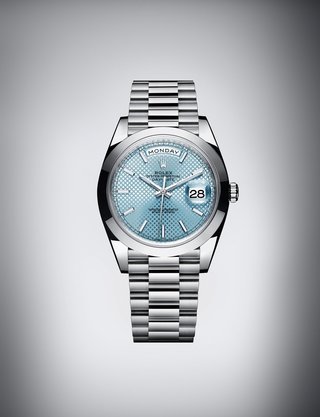 Case: The case, in yellow or white Rolesor, available for the first time in 41 mm, marries optimal comfort with elegant refinement. Fitted with a fluted bezel, the watch is waterproof to a depth of 100 metres (330 feet).