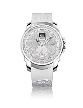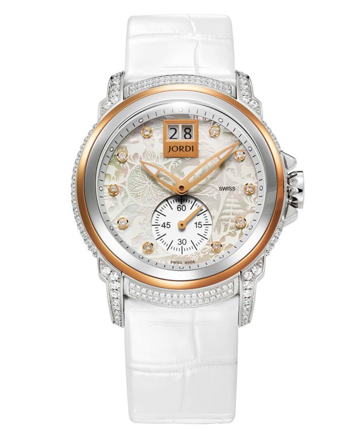 The latest collection by Jordi Swiss Icon offers ladies a choice of colours and materials for this 37mm model using the now-familiar Jordi design. From stainless steel to gold and steel to “soft black”, with up to 282 diamonds or with none at all, not forgetting this year’s trend colour purple. The Lady Icon has a soft, rounded case with domed sapphire crystal (a design inspired by a smooth pebble) and is powered by a quartz movement.