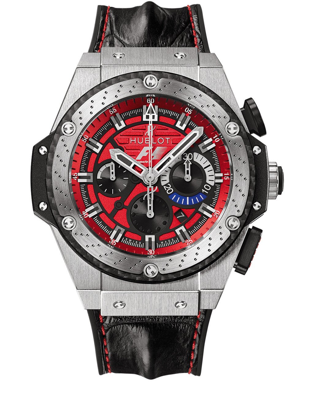 Case: 48mm diameter King Power case in vertically satin-finished titanium with black composite resin lateral inserts