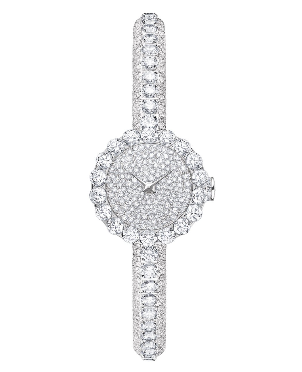 Dial: White gold paved with snow-set diamonds, Polished white gold Dauphine hands