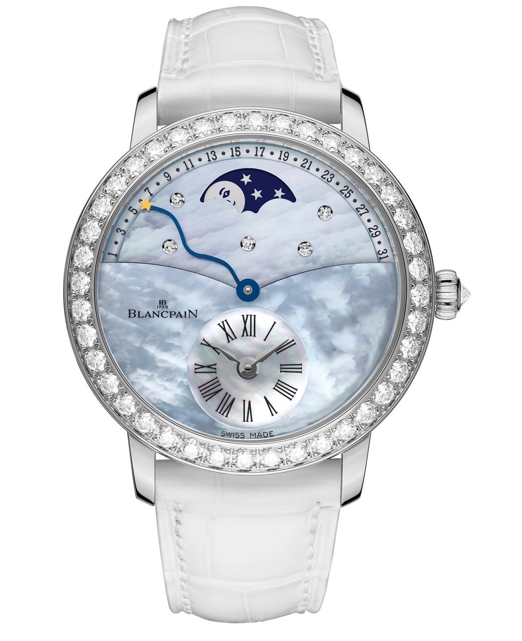 Dial: Blue mother-of-pearl set with diamonds (approx. 0.021 cts)