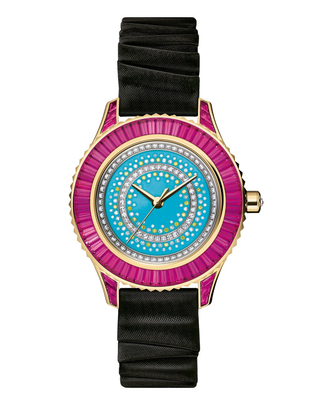 Movement: Automatic, Elite calibre by Zenith, Yellow gold and turquoise oscillating weight set with white and fancy yellow diamonds, 50-hour power reserve.