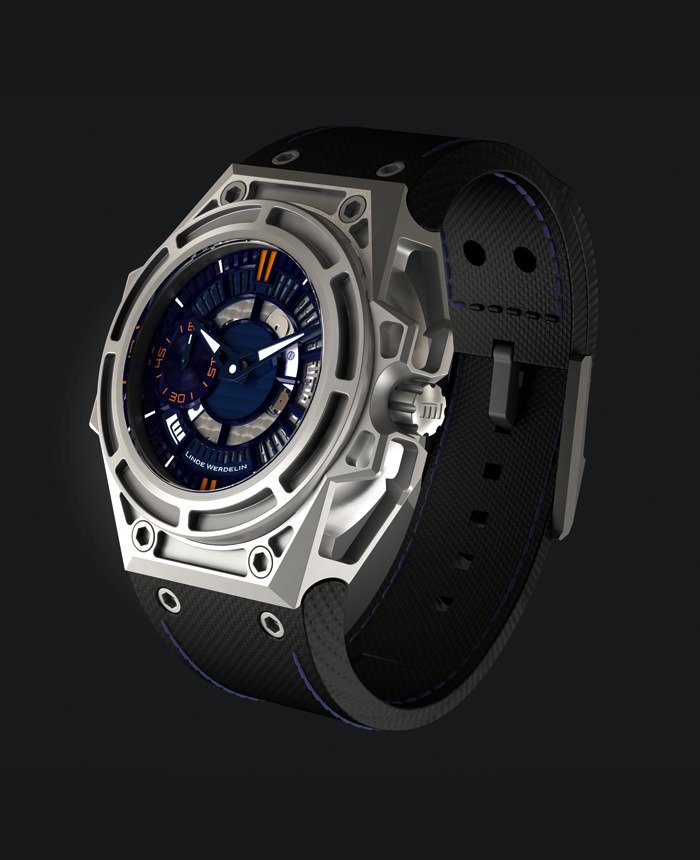 This limited edition of 75 pieces is the first in a series of three new SpidoLite II models. Its 44mm x 46mm case has been modified slightly but maintains its lightweight design and the ability to accommodate the unique Linde Werdelin instruments. Set apart by the galvanic blue tone of its skeletonised dial, with bright orange numerals and hour markers, the SpidoLite II Titanium Blue is powered by the LW 04 calibre—a self-winding movement that is custom-made for the brand by Concepto and offers a 42-hour power reserve.