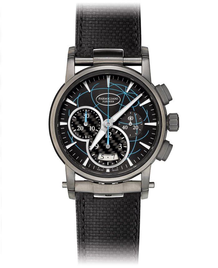 Conceived with the exploits of brand ambassador Bernard Stamm in mind during the Vendée Globe solo round-the-world yacht race, this timepiece can be used as a cockpit instrument or worn as a pocket watch or wristwatch. Its 43mm case is in matt black carbon, with a titanium support. It is powered by the PF334 calibre movement with ¼ second chronograph function, which has a power reserve of 50 hours, and comes with a choice of black calfskin or waterproofed alligator leather straps with a titanium folding clasp.