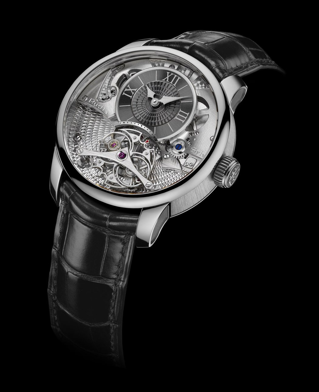 Movement: Patented harmonious oscillator, manually-wound, 21,600 vibrations/hour, 2 flat balance springs, twin barrels offering 70-hour power reserve