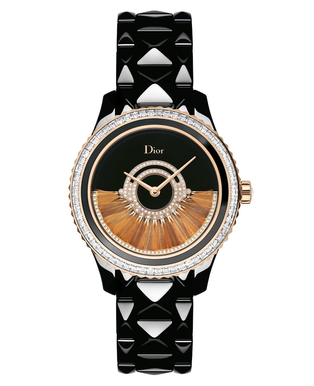 Pink Gold Bezel Set with Baguette-Cut Diamonds and Decorated with a Black Ceramic Ring