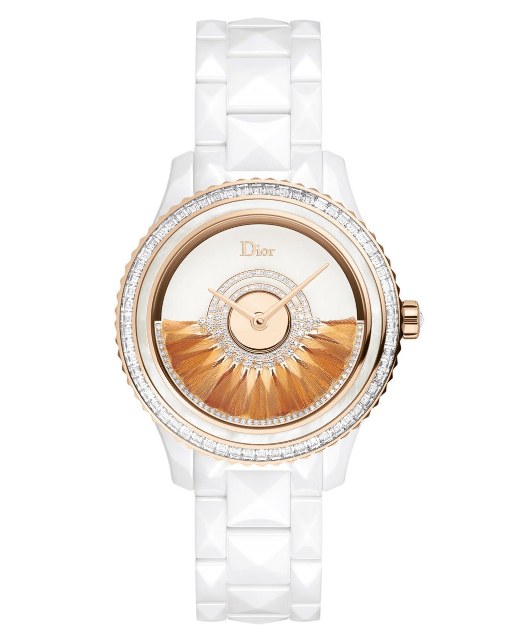 Pink Gold Oscillating Weight on the Dial Set with Diamonds and Decorated with Fawn-Coloured Feathers